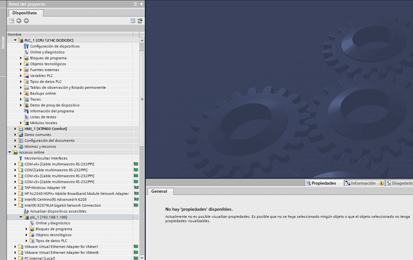El primer paso es establecer la conexión para que TIA Portal detecte el PLC conectado. Ya sabemos cómo realizar una conexión ONLINE por otros documentos de esta web.