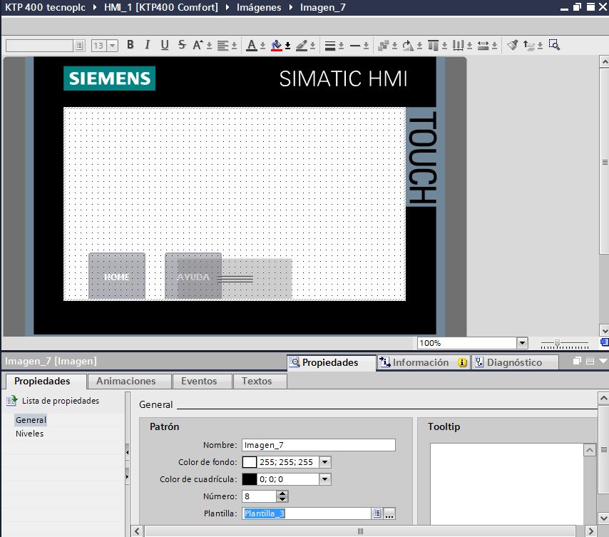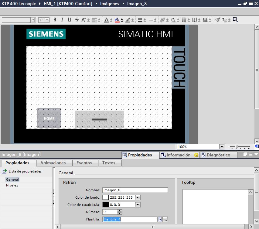 Como ya hemos estudiado en otro documento, se pueden crear plantillas TIA Portal HMI en cada pantalla de tu proyecto, donde insertar una serie de elementos que serán comunes a todas las pantallas. De esta manera podemos utilizar los mismos iconos en varias pantallas sin necesidad de tener que crear ese mismo icono cada vez que añadamos una pantalla nueva.